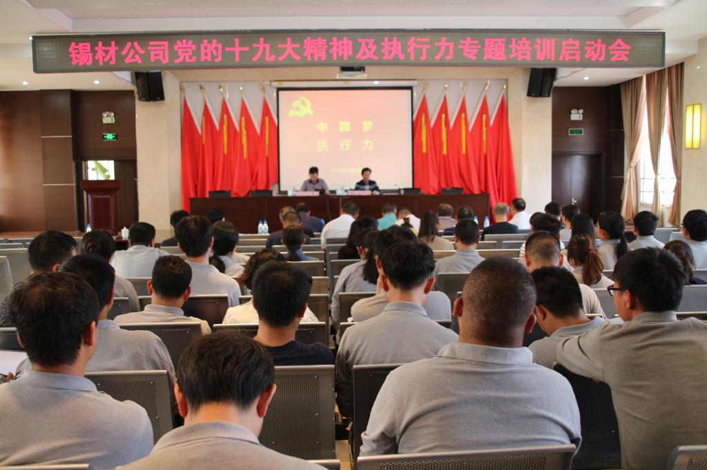 8月9日,錫材公司召開黨的十九大精神和執行力專題培訓啟動會,黨委書記、董事長王鵬飛作開班動員,控股公司黨委巡察工作第三組組長黃梓嘉應邀以“中國夢執行力”為主題開講第一課,為本次專題培訓開了一個好頭。錫材公司80余名黨員干部現場聆聽了培訓課程。