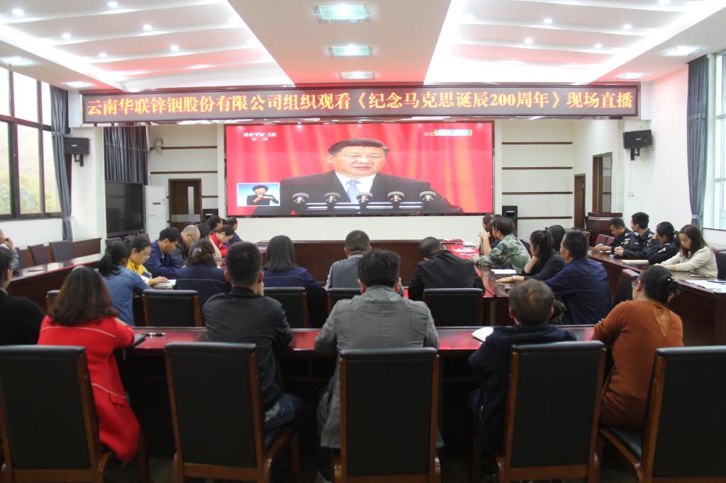 華聯(lián)鋅銦公司黨委組織150余名干部員工在公司五樓會(huì)議室及各車間會(huì)議室集中收看紀(jì)念馬克思誕辰200周年大會(huì)直播,在認(rèn)真聆聽習(xí)近平總書記重要講話后,廣大黨員干部群眾備受鼓舞,紛紛表示,在以后的工作中,將切實(shí)把習(xí)近平總書記重要講話精神貫穿到各項(xiàng)工作中去,進(jìn)一步增強(qiáng)“四個(gè)意識(shí)”,堅(jiān)定“四個(gè)自信”,不斷增強(qiáng)責(zé)任意識(shí),立足本職,為公司下一步的發(fā)展貢獻(xiàn)自己的力量。(張引娣)