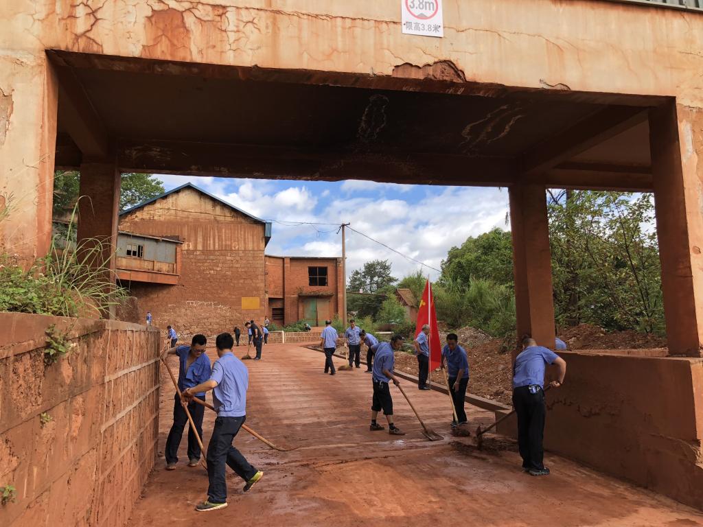6月13日,大屯錫礦選礦車間氧重選工段、精泥工段兩個黨支部組織開展以“不忘初心,牢記使命,清整廠區道路”為主題的黨日活動。