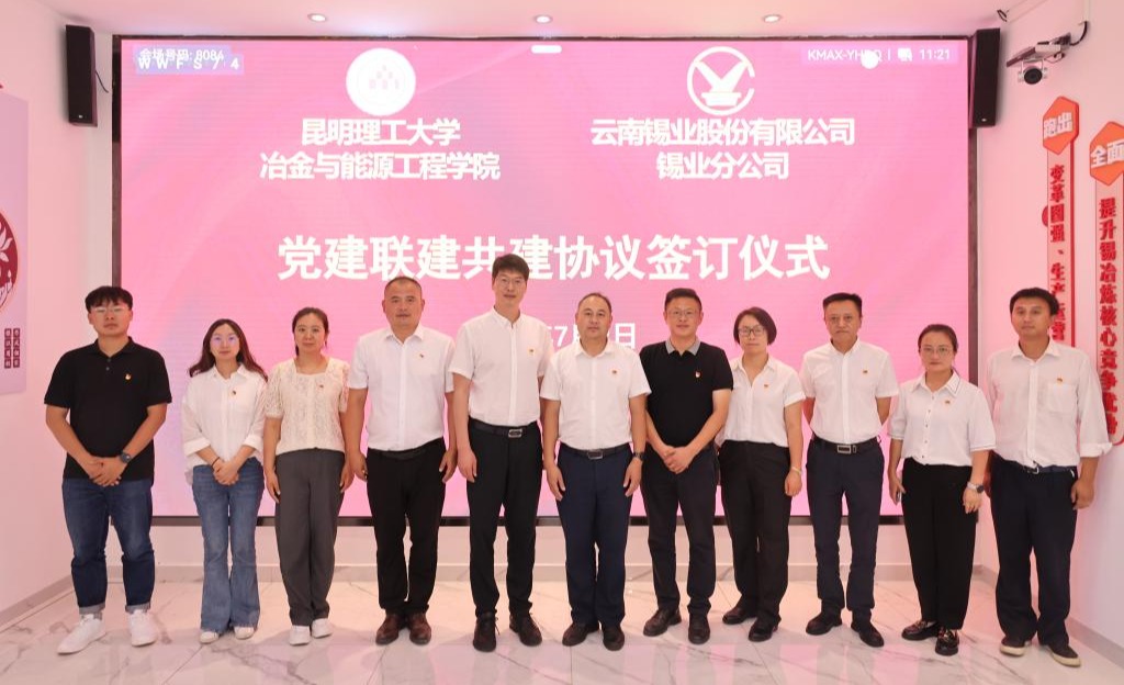 7月9日,錫業分公司黨委與昆明理工大學冶金與能源工程學院黨委舉行黨建聯建共建協議簽訂儀式,進一步發揮黨建引領作用,建立長效聯建共建機制,深化產學研合作成效。