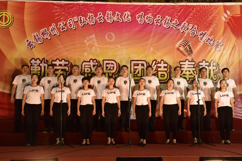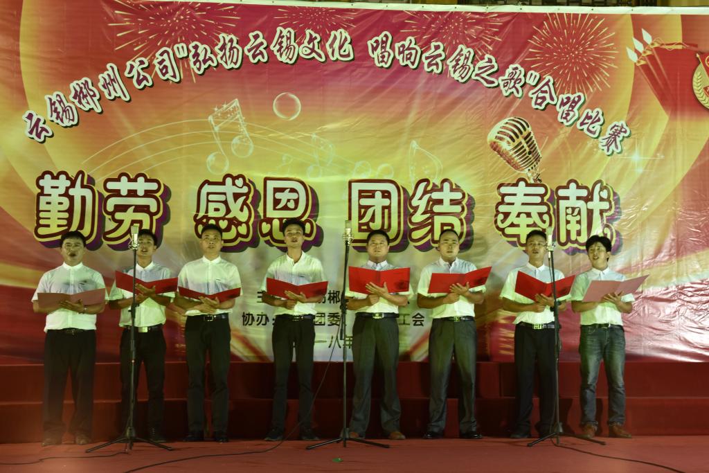 文藝演出在《咱們工人有力量》的齊唱聲中拉開序幕,屋場坪錫礦、總部機關、高新材料分公司和云湘公司4個合唱隊以整齊的陣容、昂揚向上的精神風貌投入到演出中。《永遠拼搏在一起》《中國中國,鮮紅的太陽永不落》《云錫明天更輝煌》《世紀星光》等12首歌曲,充分展示了各個單位、各個崗位上員工的精神風貌,謳歌黨的輝煌歷程和豐功偉績,激發了廣大干部員工愛國、愛黨、愛企業的熱情。號召大家以主人翁姿態積極投身郴州公司“改革突破、持續扭虧、轉型發展”工作主線中,為企業生產經營良好勢頭和轉型發展再打硬仗、再破堅冰。