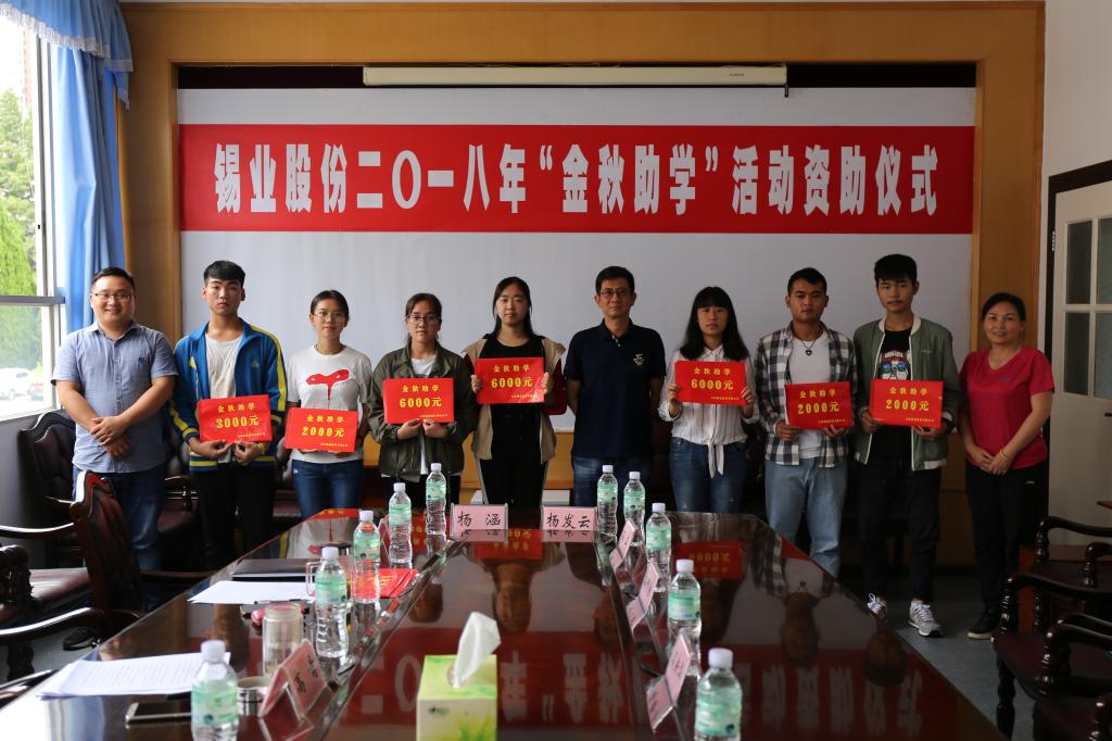 8月21日,錫業(yè)股份在個(gè)舊舉行2018年金秋助學(xué)資助儀式。錫業(yè)股份黨委委員、工會(huì)主席李林向取得優(yōu)異成績(jī)受到資助的大學(xué)生們表示親切的問(wèn)候和祝賀,希望他們把各級(jí)工會(huì)組織的關(guān)愛(ài)轉(zhuǎn)化成精神動(dòng)力,克服學(xué)習(xí)和生活中的各種困難,在嶄新的人生舞臺(tái)上,唱響最華美的樂(lè)章。
