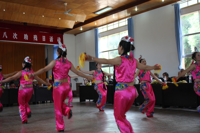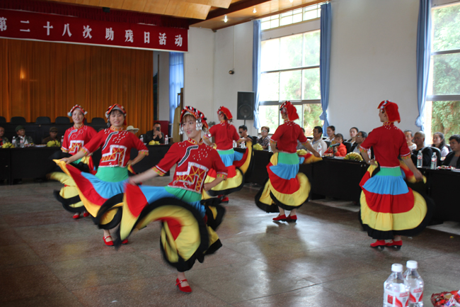 隨后,還進行了文藝表演,把助殘日活動推向了高潮。老廠政企、農村的群眾演員表演了《舞龍》《士兵小唱》《彩云之南》《彝家狂歡》等精彩的歌舞節(jié)目;個舊市殘聯(lián)志愿者表演了手語《最好的未來》,用無聲的語言表達了對美好未來的憧憬和向往;羊壩底福利廠殘疾職工獨唱歌曲《母親》,抒發(fā)了對社會、對殘疾人的感激之情,整場精彩的表演,贏得了觀眾雷鳴般的掌聲。